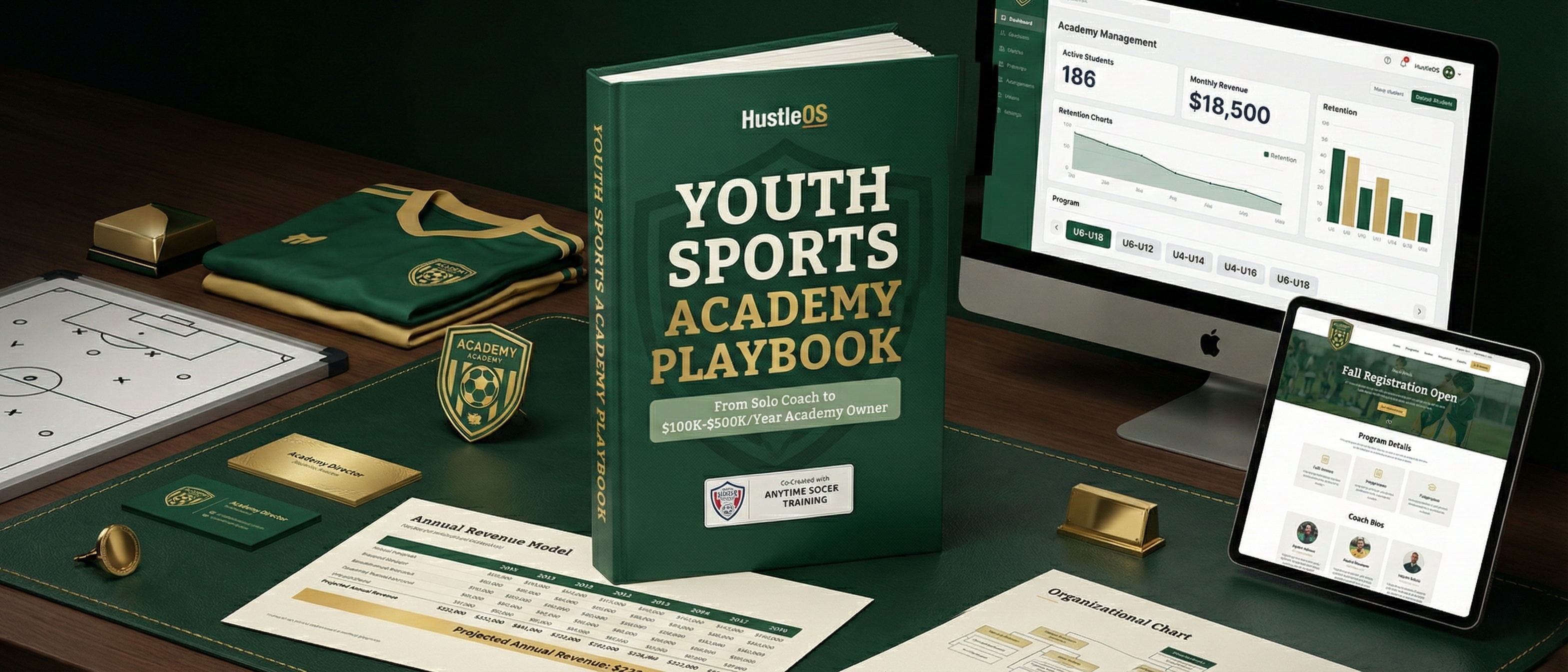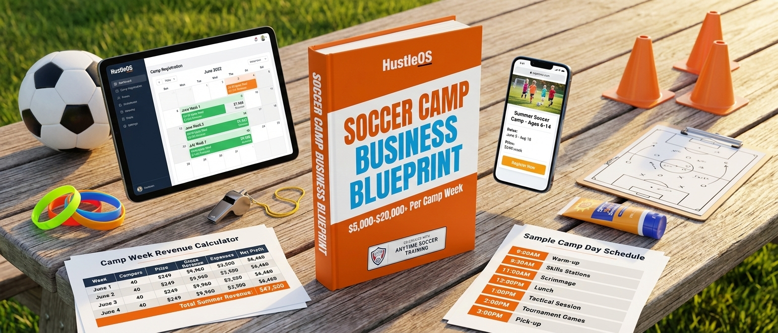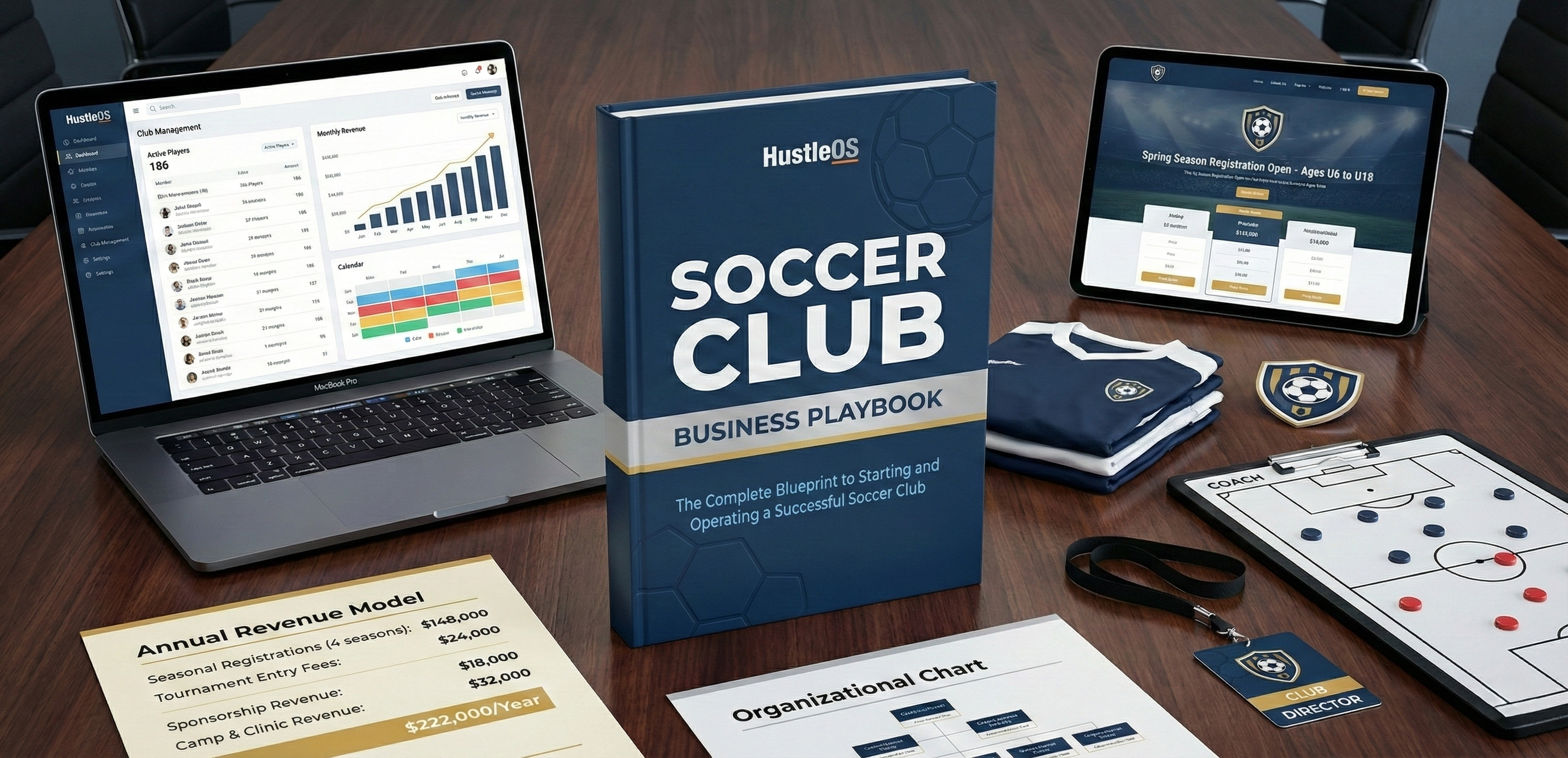 Turn your soccer knowledge into a real business. HustleOS offers 4 step-by-step business playbooks built specifically for the soccer industry — Soccer Club, 3v3 Tournament, Soccer Camp, and Youth Sports Academy.